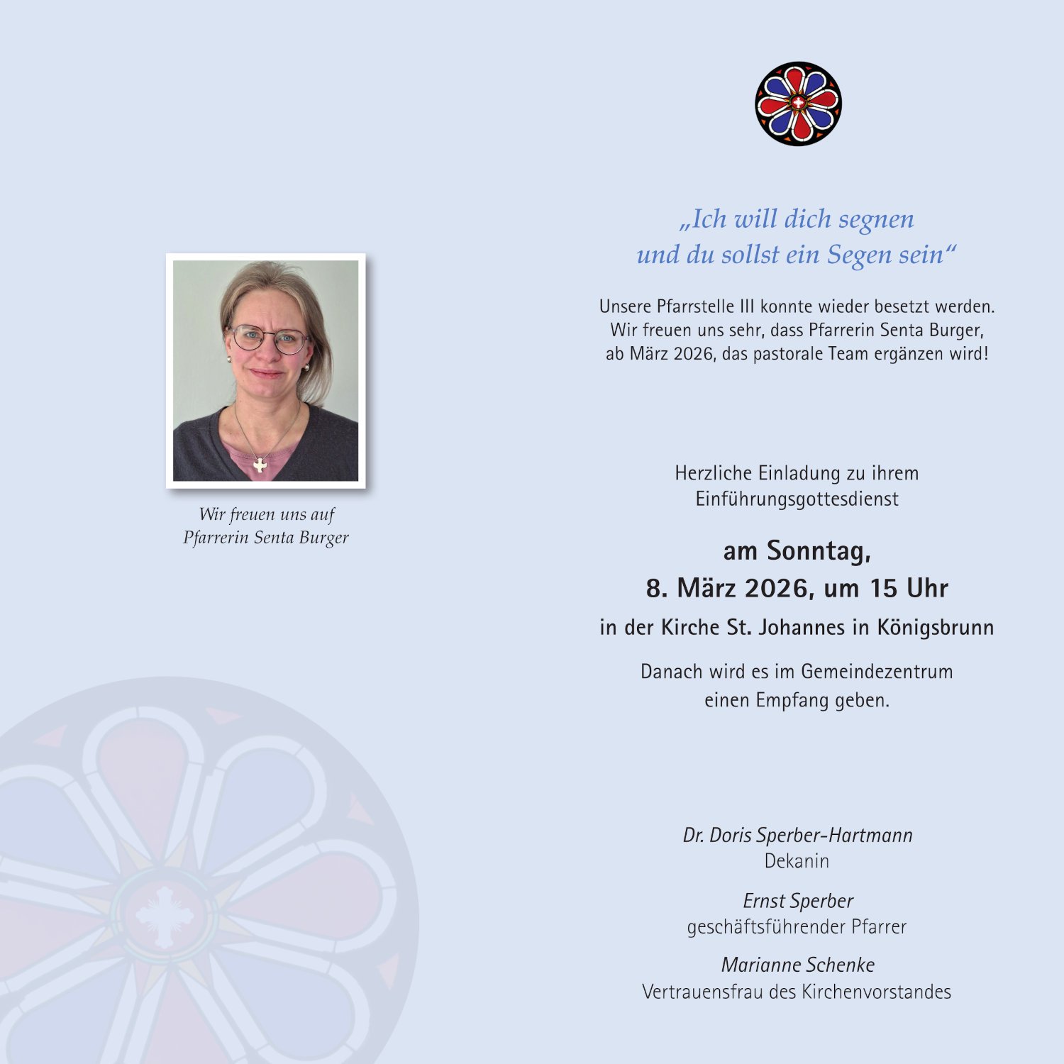 Einführungsgottesdienst am 08.03.2026 15 Uhr 14. Februar 2026 | Keine Kommentare Kategorien:aktuelles, Gottesdienst